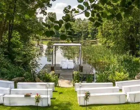 Ein natürlicher Rahmen für eure Trauung – zwischen Bäumen, mit Vogelgezwitscher und ganz viel Ruhe.